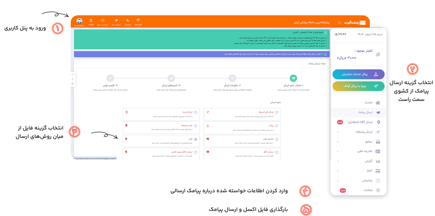 اگر تعداد افرادی که میخواهید برایشان ارسال پیامک انبوه کنید زیاد است، بهترین روش ارسال پیامک از فایل اکسل است؛ یه کمک این روش در پنل اس ام اس آموت، بدون نیاز به وارد کردن دستی شمارهها، پیامکهای انبوه با سرعت و دقت بالا ارسال میشود.