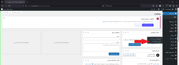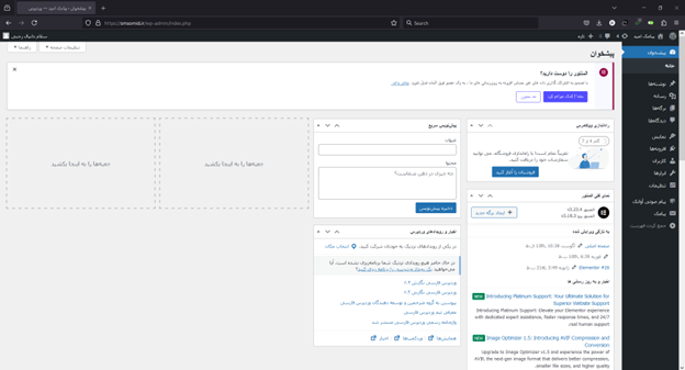 مرحله اول: ابتدا باید وارد داشبود وردپرس خود شوید؛ در حالت پیشفرض باید با محیط زیر رو به رو شوید: