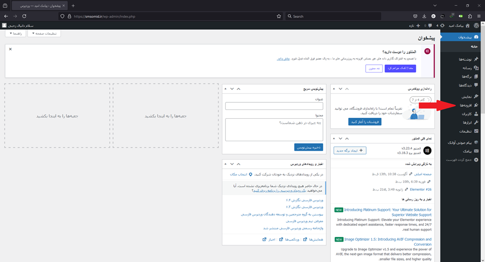 نحوه نصب افزونه المنتور روی پنل پیامک آموت