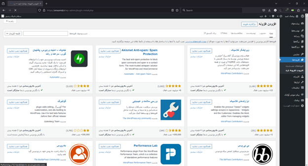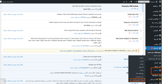 مرحله دوم: از منوی سمت راست، گزینه “افزونه ها” و سپس “افزودن افزونه تازه” را انتخاب کنید.