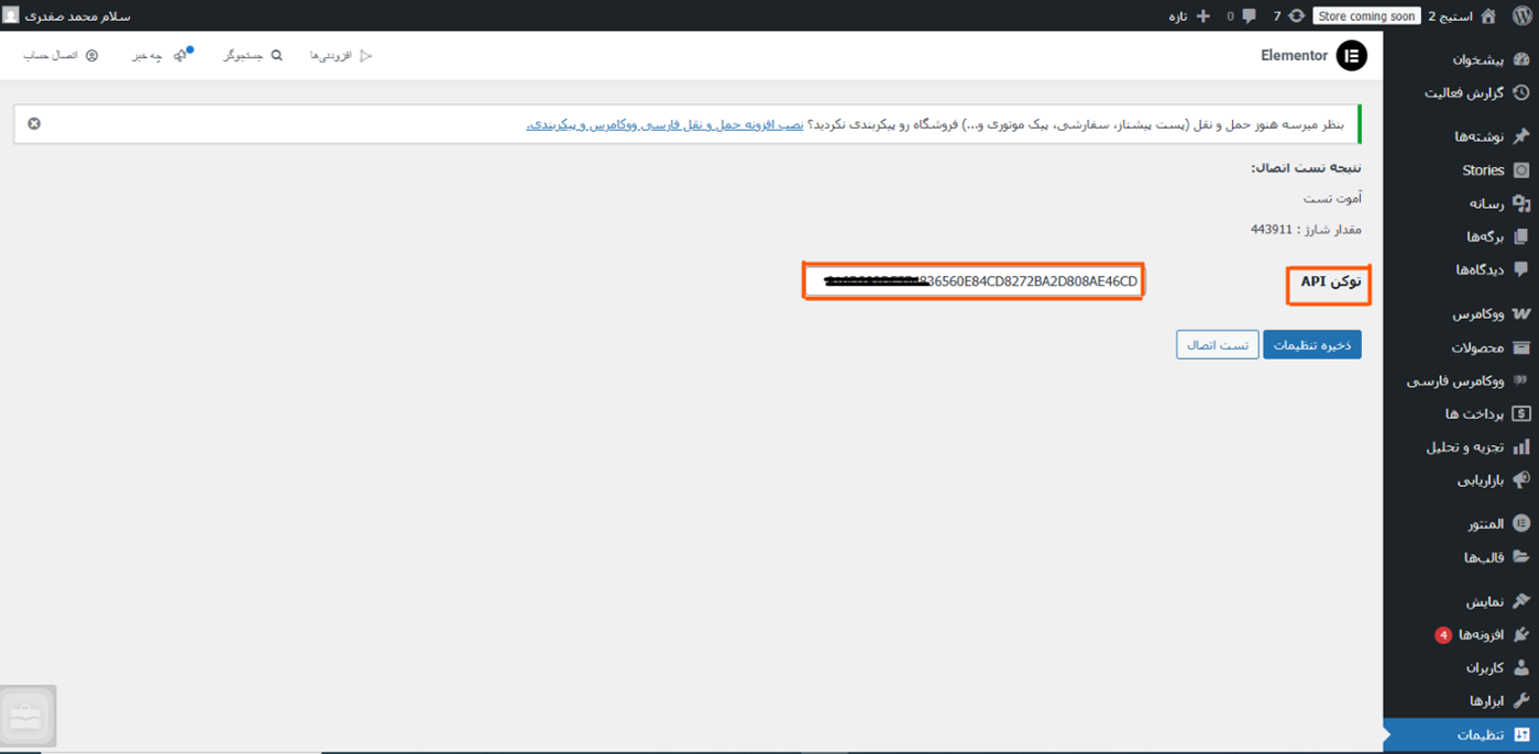 پس از تهیه پنل، باید افزونه نصبشده را به این پنل پیامکی متصل نمایید که نحوه انجام این اتصال در ادامه توضیح داده شده است.