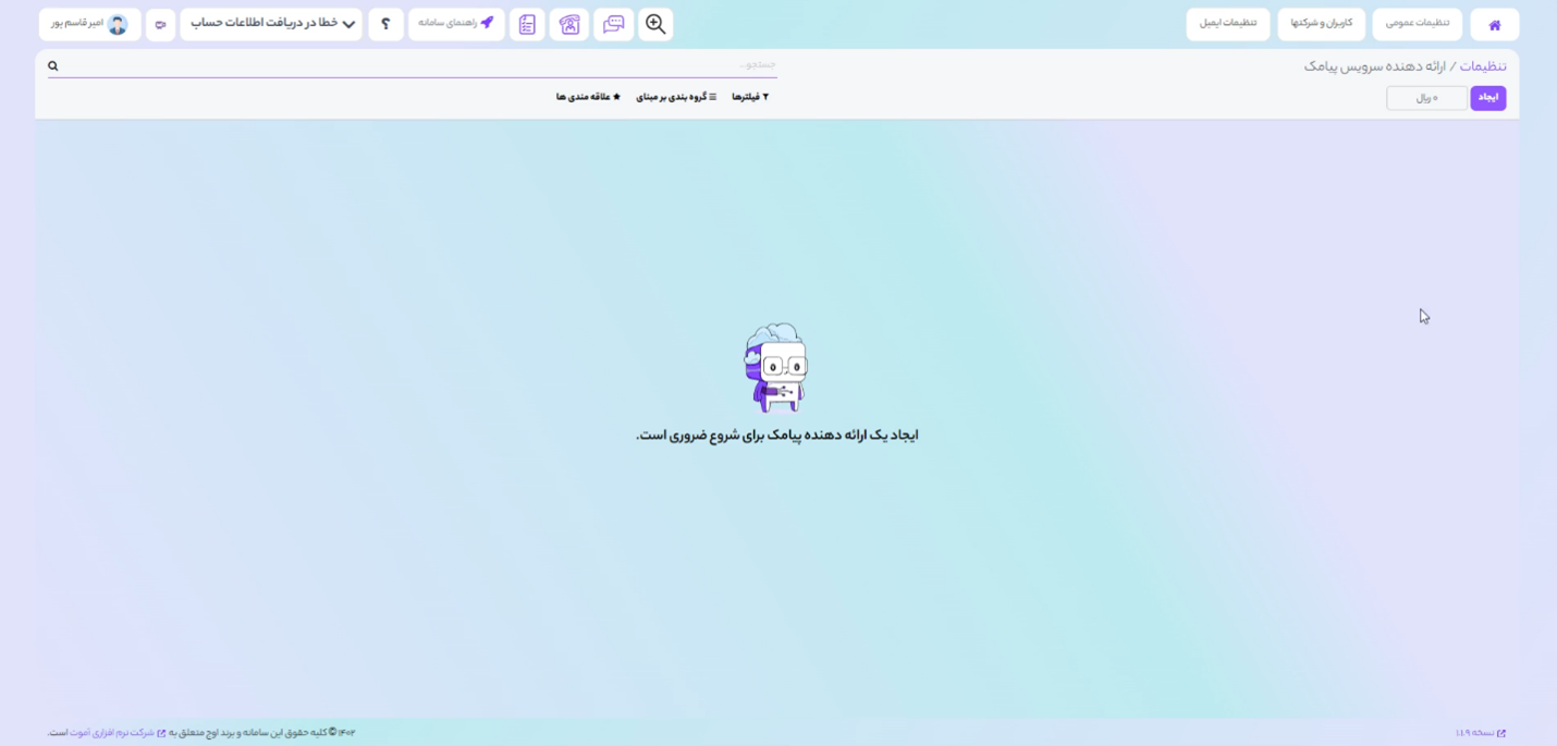 مرحله سوم: ارائهدهنده سرویس پیامک در اوج ابری را ایجاد کنید.