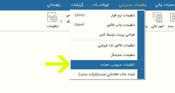 مرحله دوم: پس از آن بر روی “تنظمیات سرویس دهنده” کلیک کنید.